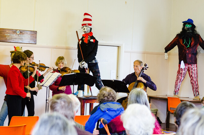 Lyrics by Joy Cowley, music by Gareth Farr - Scary Music was a festival highlight for us - a riveting performance by the super talented String Quartet, the hall was packed to the rafters with children of all ages and we were on the edge of our seats. Apart from being amazingly talented, this team engaged the audience at every stage of the performance, what a treat to see the children's faces light up as they sat spellbound captured by the "scary story", learning how musical instruments can "talk" and being given a superb lesson in the culture of live classical music. We could have gone to each and every session (there were three!) - definitely hoping the quartet will be back again for Booktown 2017!