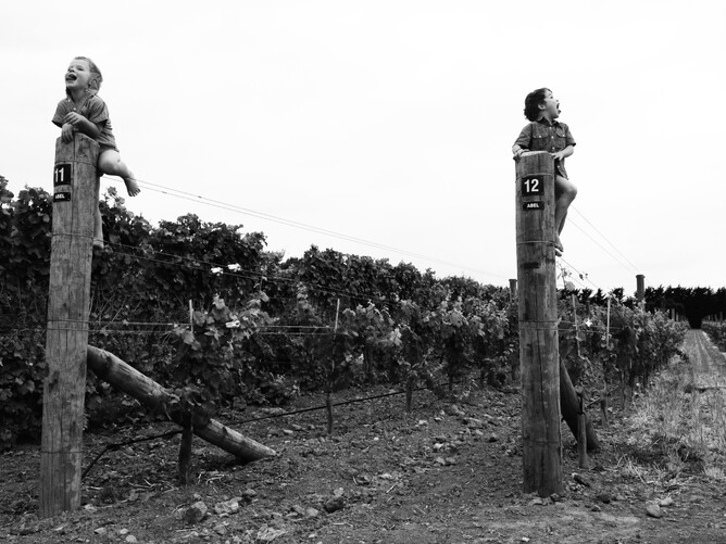 "At first glance these almost look like totem poles, and a studied glance intrigues when it becomes clear it's children having fun. It's captivating, full of expression - evokes emotion, happiness, true spirit of summer time in Martinborough. You can't help but smile when viewing this image with it's lovely humour. Tells a great Wairarapa regional story in a contemporary way".