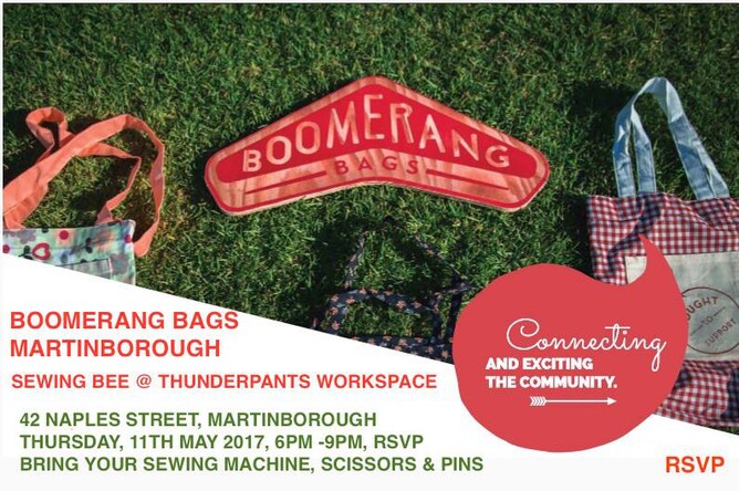 Firstly, volunteer to join the next Boomerang bag sewing bee, 11th May 6-8 pm at Thunderpants workspace on Naples Street. Anyone who can sew, iron and/or cut is welcome to join in the fun and help create more bags, loads of fun guaranteed.