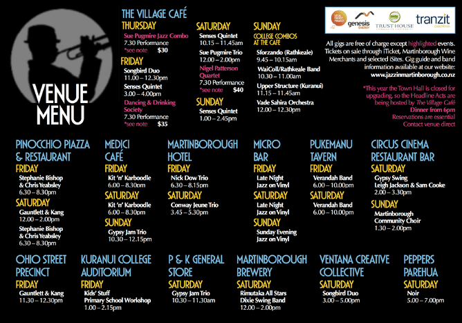 JAZZ IN MARTINBOROUGH 2017 PROGRAMME