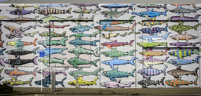 Below is a list of the mural locations and their artists. We have several very well known artists on board including our own Andy Shaw as well as Rebecca Farr, Livvy Nonoa, and Tina Rae Carter, a well known tutor at Ventana and the muralist behind the Japanese female figures on the Wellington waterfront. From Wellington we’ve got Greta Menzies and Gina Kiel. (Check out Gina’s recent “Grow Wellington” promotion on social media Gina KieL Grow Wellington, a great mini doco about how cool our capital city is.) And finally, at Te Kairanga Vineyard, we have Auckland’s Andrew Steel painting our largest mural. Andrew’s work can be seen worldwide, you might recall seeing the shark wall near the waterfront New World in Wellington.