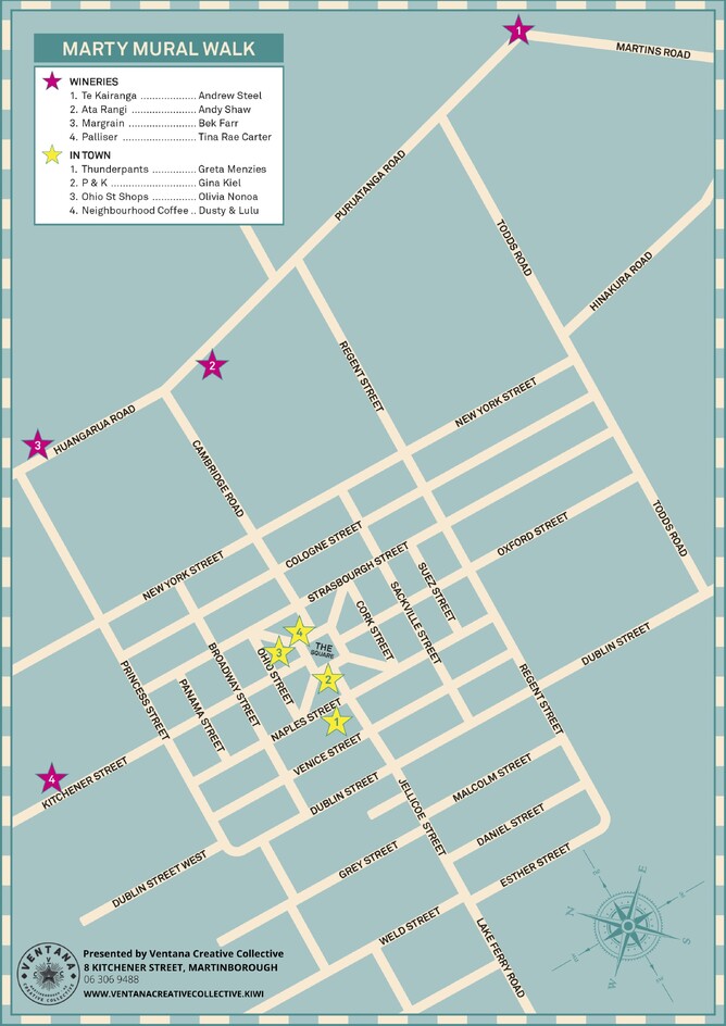 Ventana Creative Collective is looking forward to being part of the community for many years to come. Thank you Martinborough for being the perfect place to start this creative venture. We can’t wait to see everyone on the mural walk this summer!
