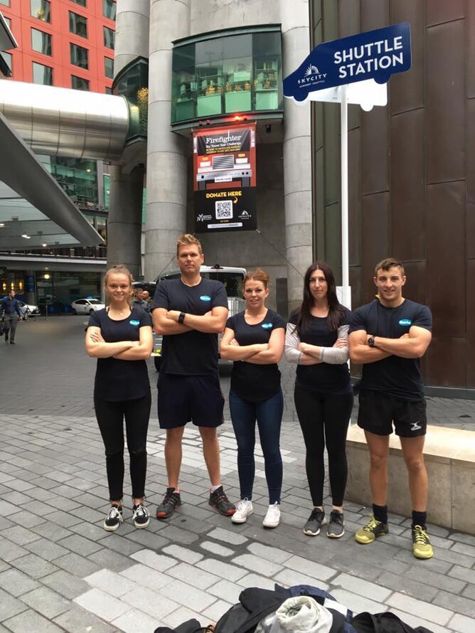 MARTINBOROUGH FIRE FIGHTERS EMILY ABBOT, ROBERT BROWN, ZOE SINCLAIR, MEL COLEMAN & BRAD ALDRIDGE AT THE SKY TOWER CHALLENGE 2017