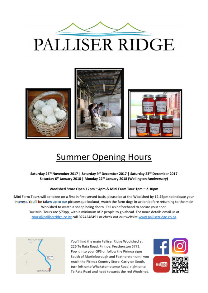 The Palliser Ridge Woolshed will be open regularly throughout the Summer, for those passing through it’s a must-see, with many amazing traceable products, such as their new Palliser Ridge Lambs Wool, available in cones, balls or gorgeous hand-knitted garments.