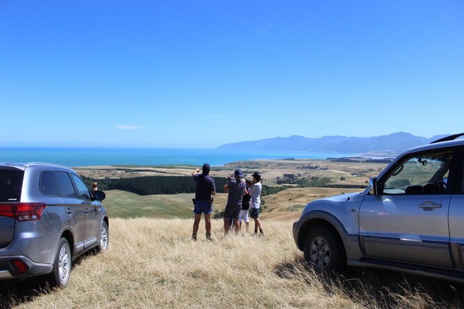 ⇡ Kurt shows the tour group views of the ocean and the South Island. Photo Credit: Lisa Portas
