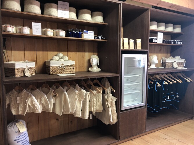 ⇡ Traceable products for sale in the Palliser Ridge Woolshed. Photo Credit: Lisa Portas
