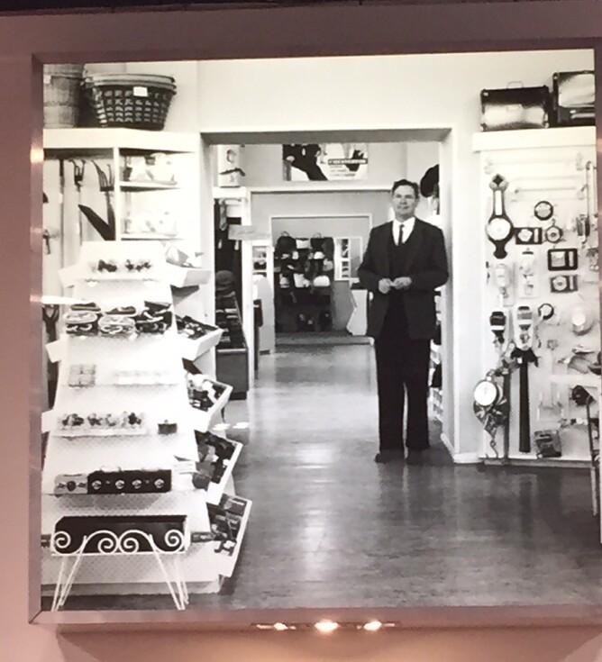 The picture is of Conor's Grandfather Harry circa 1960 at the opening celebration of renovations where the Menswear, Womenswear and Haberdashery were combined with the original Pain & Kershaw building. We really wanted to celebrate the history of the family business and pay tribute to the 3 generations before us, so decided to have Harry's image there to honour that history. We want to do him proud!