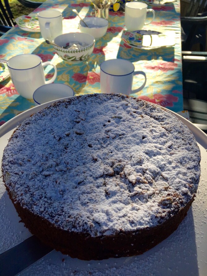 ⌃ Fresh baked feijoa cake with coffee on arrival