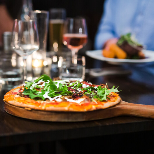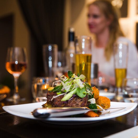 Our licensed restaurant offers a fresh seasonal menu at affordable prices. Enjoy your meal in front of the open fire or outdoors in the sunny courtyard. Take a look at our menu which features a range of a la carte dishes, a selection of tasty salads, gourmet pizza and home made desserts.