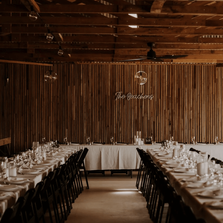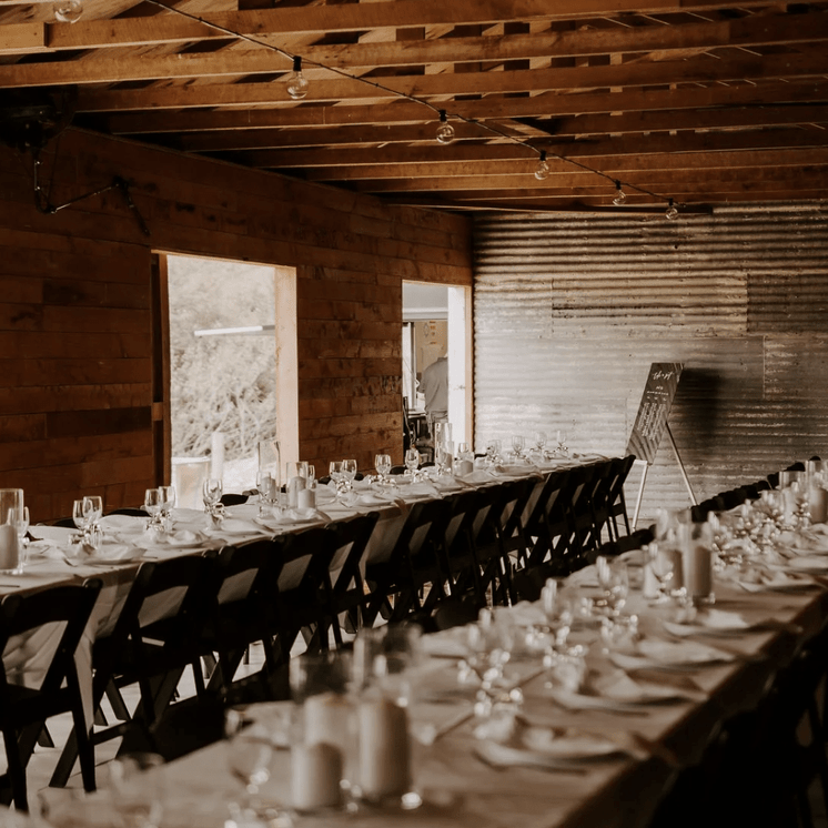 After your ceremony, celebrate in style at The Vue Woolshed — a meticulously renovated 100-year-old woolshed with spectacular views of Temuna Valley and the rolling Wairarapa hills. Designed to blend rustic charm with modern amenities, The Vue features seating for up to 120 guests, a dance floor, movable raised stage for your band or DJ, a fully equipped bar, coat area, large chiller, kitchen facilities, bathrooms, and a spacious deck perfect for drinks and lawn games.