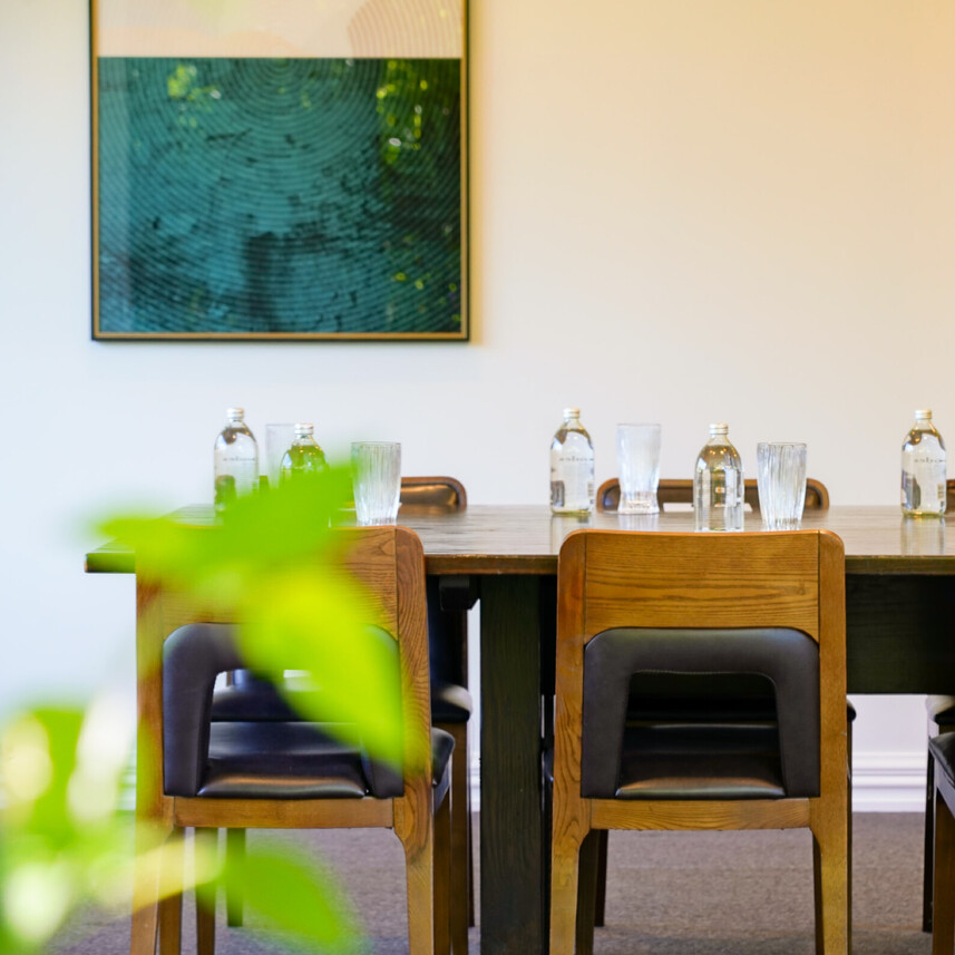 Choose from our two light-filled spaces: the Terrace Room, which accommodates up to 80 guests with scenic views and flexible layouts, or the intimate Boardroom, perfect for smaller gatherings.
