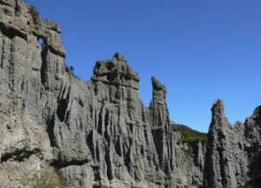 The 'badlands erosion' of Putangirua Pinnacles is a spectacular landscape feature.
