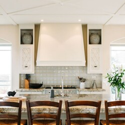 The 3 bedroom villa is split between two levels, joined by an Oamaru sandstone staircase. The interiors were custom designed by local designer firm Kurio Design. The villa has a light and bright Hamptons-style feel that has been designed to incorporate as much natural light as possible with high ceilings, large windows, and full sliding patio doors.
